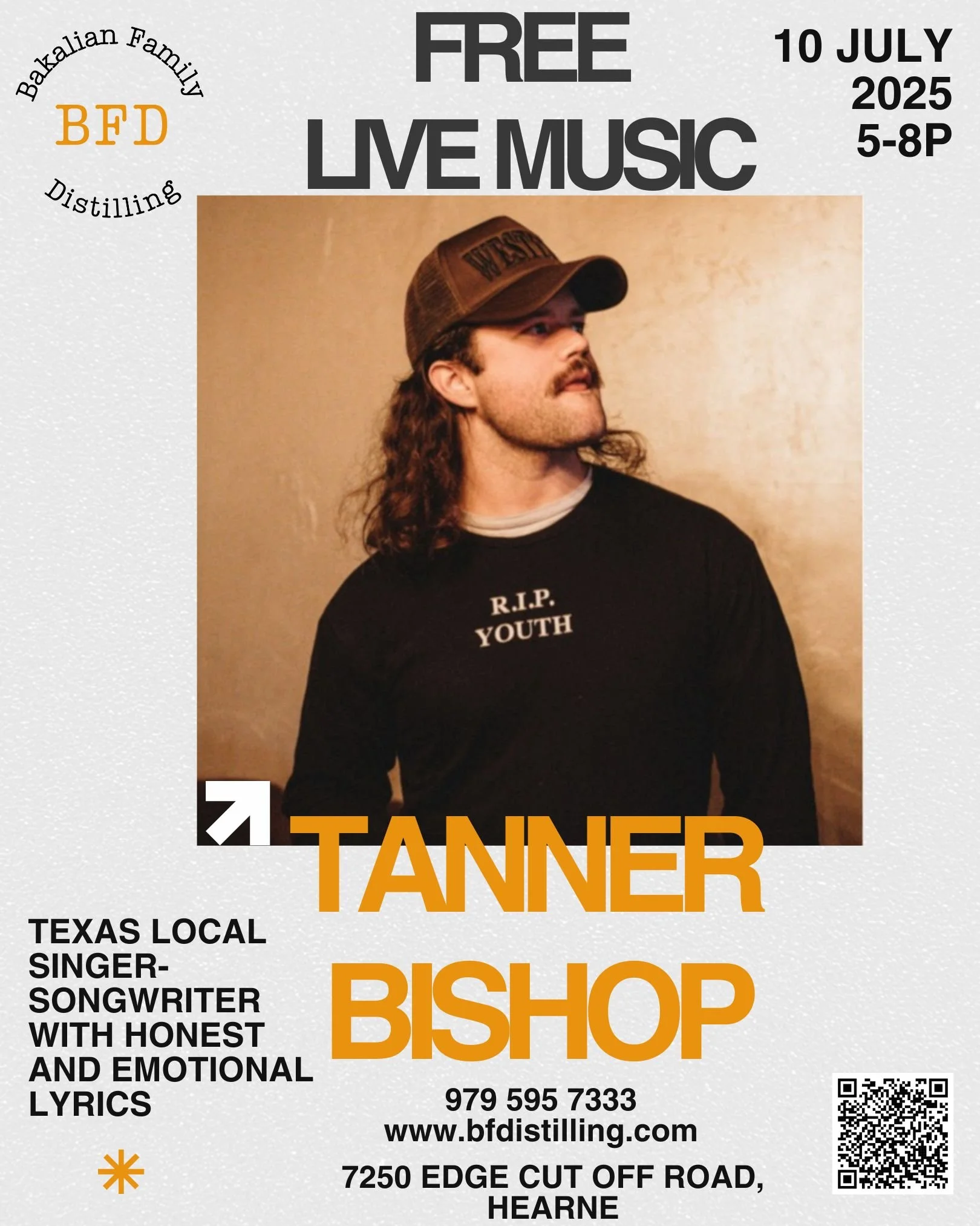 Join Bakalian Family Distilling on Thursday, July 10 from 5–8PM for the next round of their Summer Live Music Series! 🎶 Texas local Tanner Bishop will be bringing the tunes, and the BFD crew will be serving up their signature spirits. This family-friendly event has plenty of space to move, dance, and enjoy a laid-back summer evening.