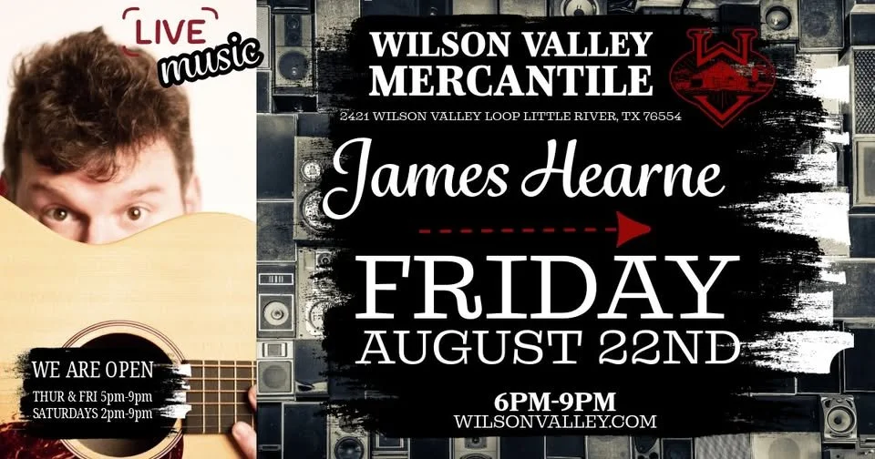 Looking for a laid-back Friday night in Central Texas? 🍔🥃 Wilson Valley Mercantile is hosting live music in the tasting room on Friday, August 22, from 6–9 PM.